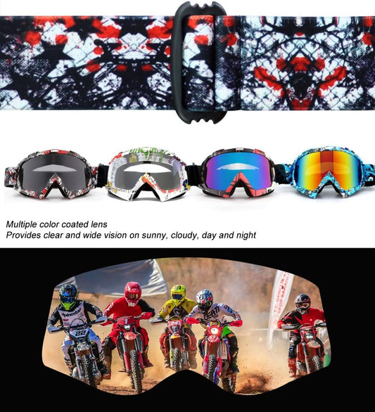 Motorcycle Goggles, ATV Dirt Bike off Road MX UV400 Motocross Goggle with Soft Thick Foam Anti-Scratch Dustproof